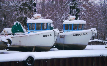 A hideg idő beköszönte óta a parton pihennek a halászhajók Társaságunk keszthelyi telephelyén. Fotó: balatonihalgazdalkodas.hu