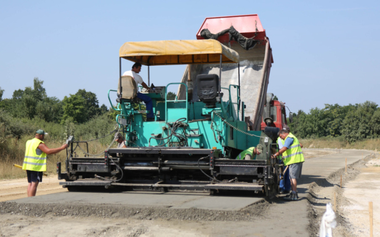 A 85 százalékban európai uniós, 15 százalékban pedig hazai forrás felhasználásával épülő elkerülő 77 százalékos készültségi szinten áll. A 10,7 kilométeres szakaszon - a hidak csatlakozási pontjain kívül - elkészültek az aszfalt alap- és kötőrétegek, ezen a héten pedig a kopóréteg építése is megkezdődik, de már zajlanak az alakító földmunkák, a humuszolás és az árkok burkolatának építése.